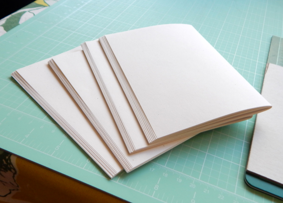 I make them in all sorts of sizes and shapes and I’m going to start making some super tiny ones. The most common size I make is one made from a half a sheet of letter paper. I make all my books completely by hand with no heavy machinery (though I would love a heavy duty guillotine cutter!) and I thought I’d give a taste of what goes into them.
