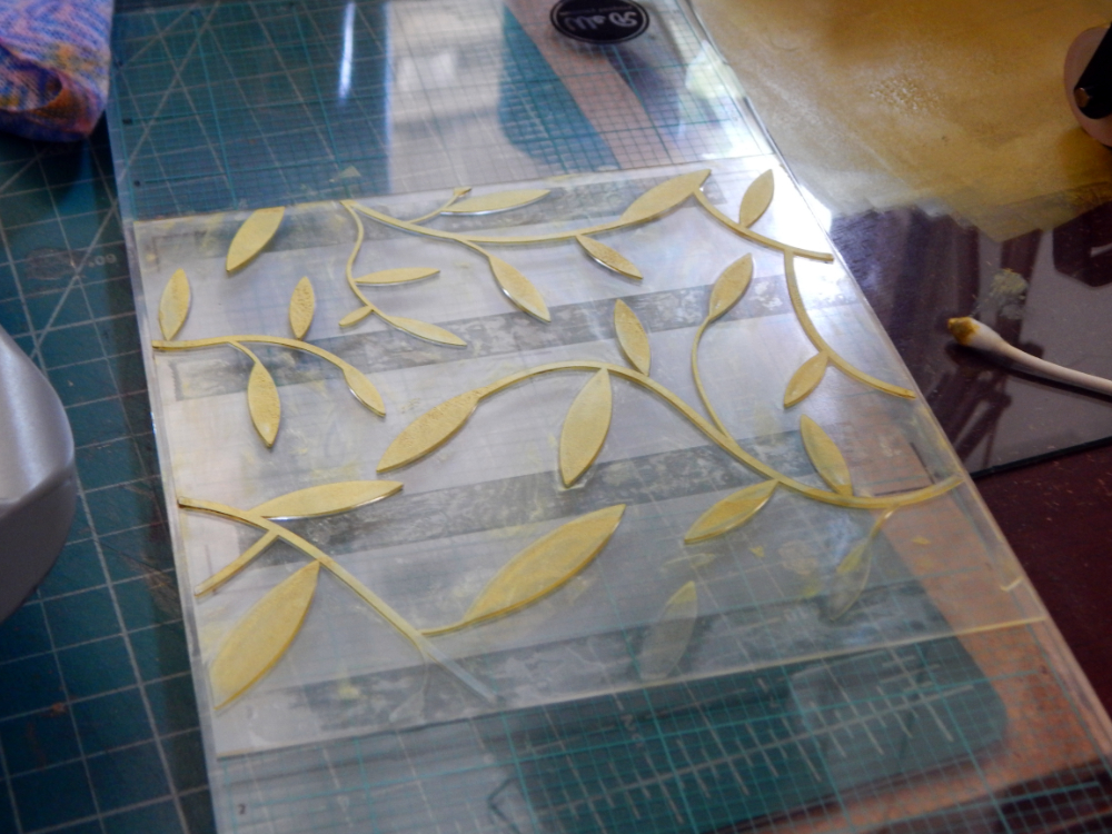 The gold ink I used gave some unexpected but kind of nice variation to the design and the de-bossed look is very satisfying.