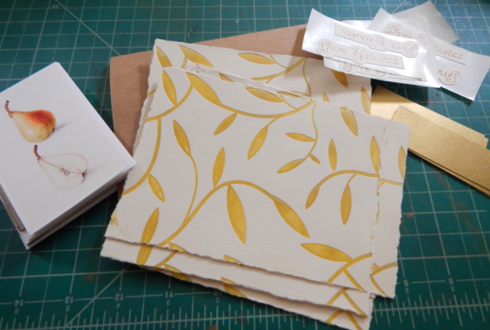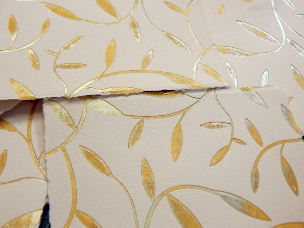 The gold ink I used gave some unexpected but kind of nice variation to the design and the de-bossed look is very satisfying.