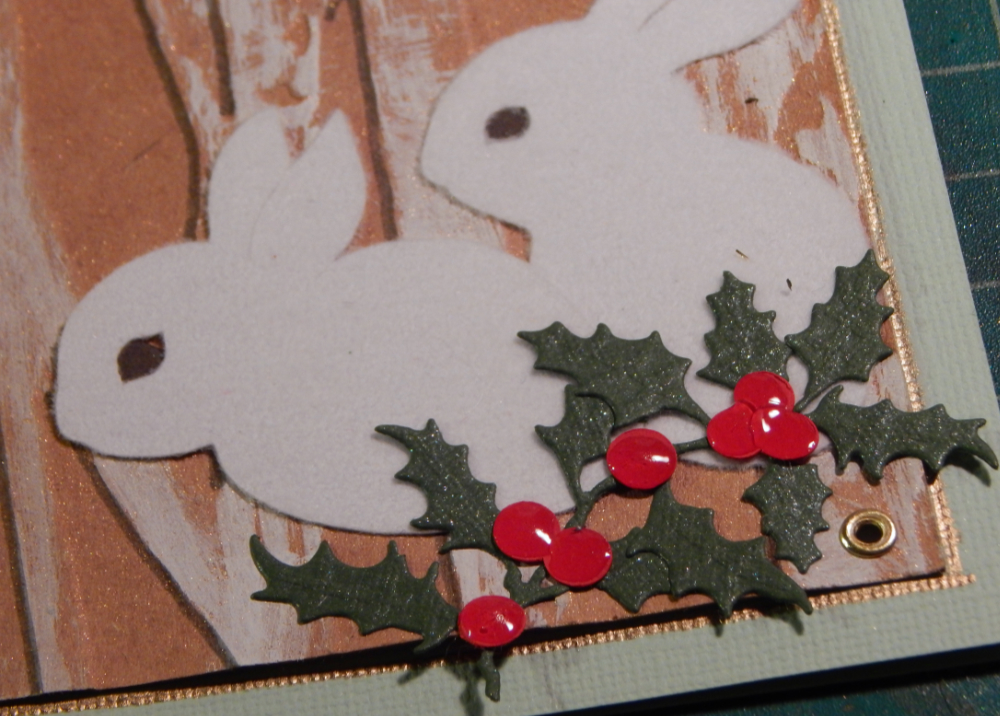 So much better being fuzzy! I then used the branch die cuts to fill in around the bunnies and added glossy berries for color.