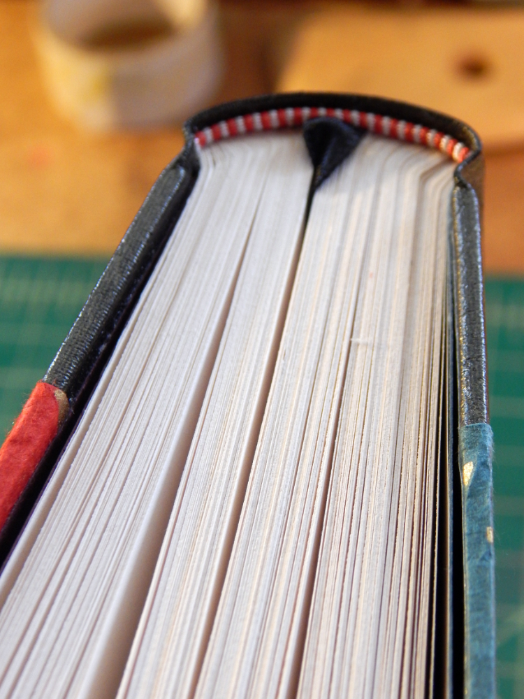 This winter I was ready to tackle this project and get it done. I did a basic sewn book block with tapes, and cased-in cover.
