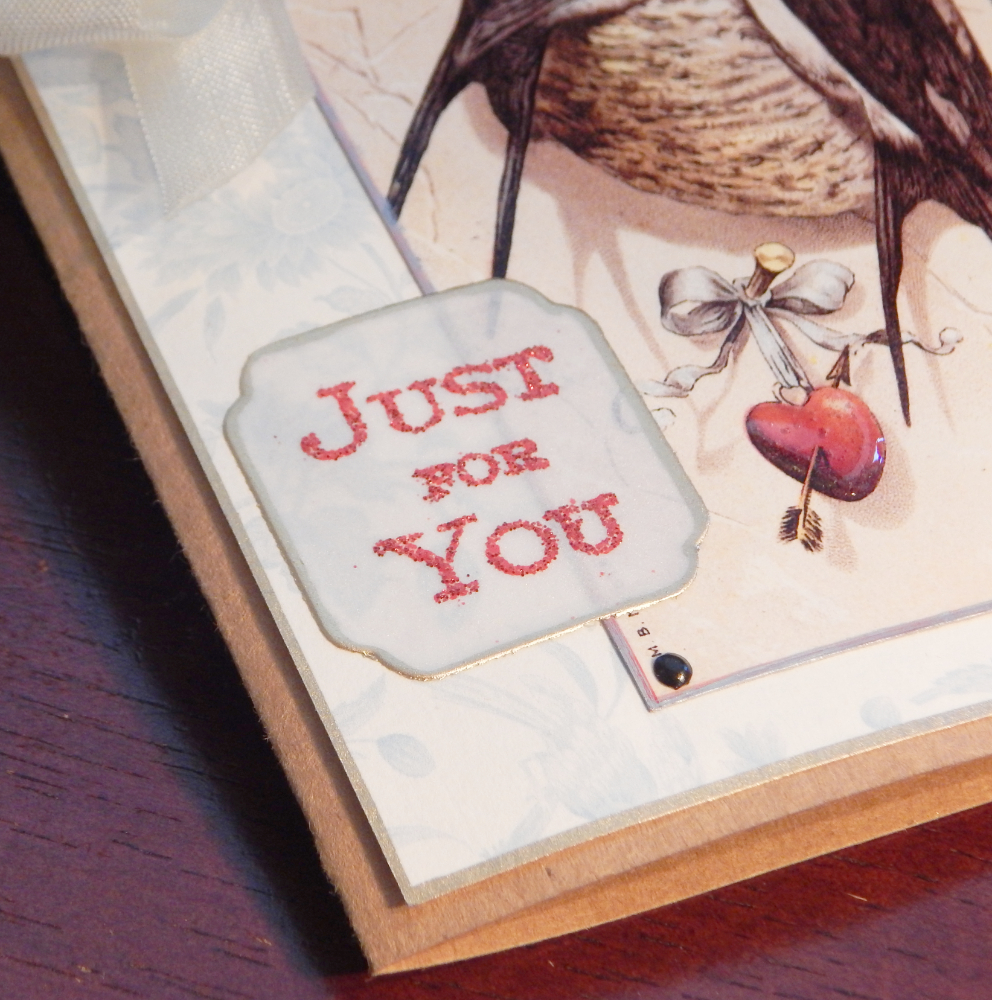 I wanted to put a sentiment on the front and I chose this “Just for you” stamp, embossed with red glittery embossing powder.