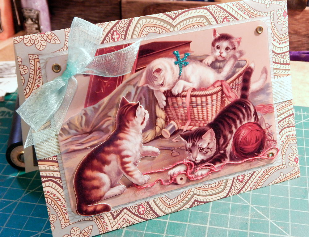 This was the cutest vintage image of these kittens playing with a mending basket. There were so many possibilities with it!