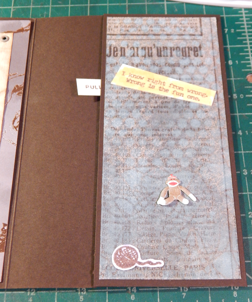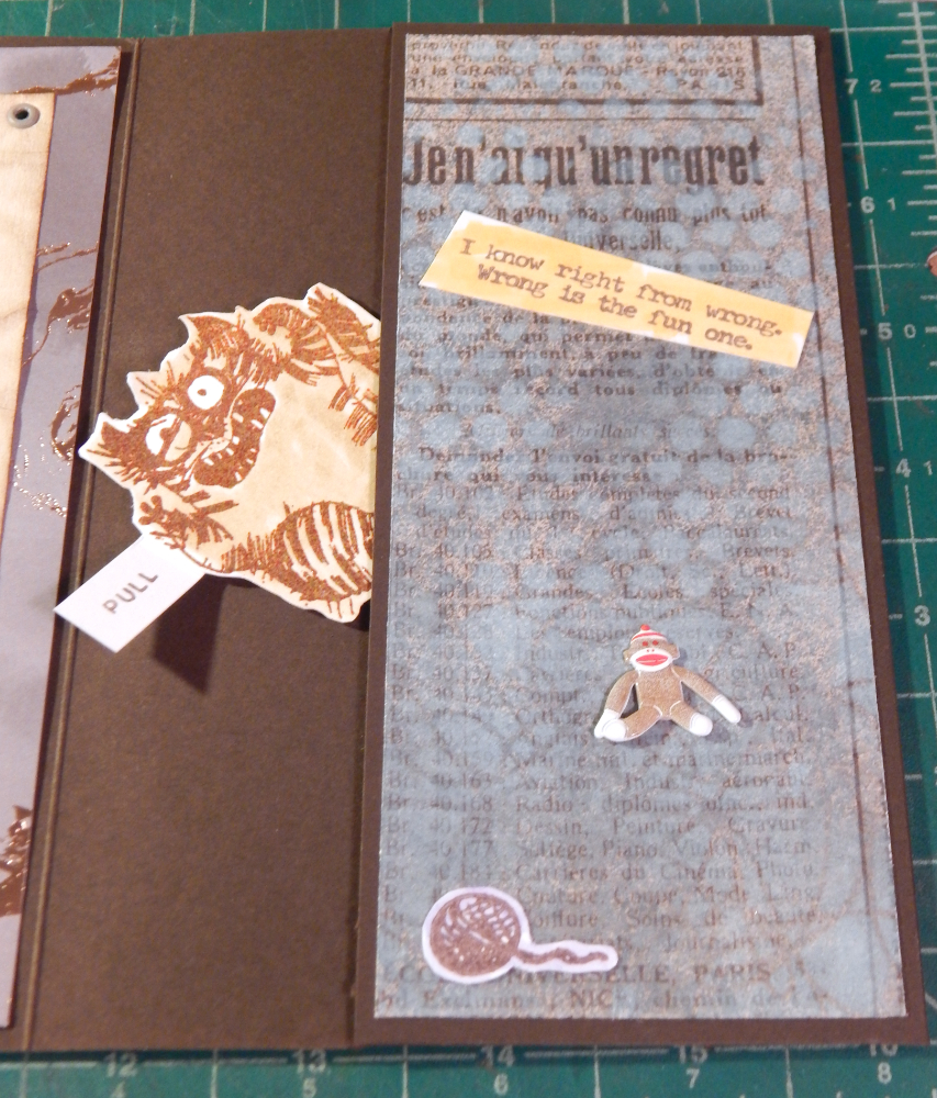 A pop out cat! The sock monkey brad is the fulcrum of the pop out and the extra crazy cat was perfect for this!